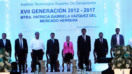 En representación de la Secretaria de Educación, el titular del coordinación Regional de Desarrollo Educativo (Corde) número 14, Hugo Aníbal Bonilla Macip, felicitó a los egresados y les pidió que mantengan su mente en el desarrollo de sus profesiones, pero que en todo momento agradezcan a sus padres y familiares y aporten a la economía de Zacapoaxtla y la sierra Nororiental. La directora del ITSZ, Arminda Juárez Arroyo comentó que en el ciclo escolar que culminó, egresaron alumnos de lageneración 2012 – 2017 de las carreras de Ingeniería Informática, Ingeniería Forestal, Ingeniería Industrial, Ingeniería en Administración, Ingeniería Mecatrónica, Licenciatura en Biología y este año egresó la primera generación de Ingeniería en Administración educación a distancia en su modalidad mixta.