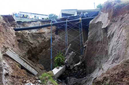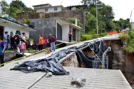 Los vecinos de esta zona, se reunieron este 26 de septiembre y señalaron que este hundimiento se generó desde el pasado ocho de septiembre y a pesar del riesgo, las autoridades municipales mantuvieron abierto el paso para automóviles y motocicletas, lo que provocó que al hundimiento creciera y ahora ya se encuentra a menos de un metro de las casas. Magdalena Aguilar Sánchez relató que durante la madrugada del ocho de septiembre de 2017, el tubo se reventó y se vieron obligados a evacuar sus hogares y refugiarse con amigos y familiares, sin embargo, se vieron obligados a pagar renta porque no pueden regresar a sus domicilios, ante el riesgo de la presencia de un sismo o de lluvias torrenciales.