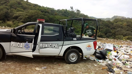 La situación dijeron que es preocupante pues en diversas ocasiones han pedido el apoyo a la comandancia de la policía municipal para que realice algún apoyo y la respuesta es que nunca hay unidades, sin embargo estas han sido captadas incluso acarreando basura de una fiesta que el alcalde panista organizó. En las imágenes se observa la unidad 06 de la policía municipal de la cual una persona al parecer trabajador del ayuntamiento está dejando basura en el relleno sanitario, donde se aprecian bolsas negras y cajas de bebidas alcohólicas.