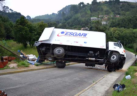 subió la pendiente y la unidad se fue hacia atrás terminando volcada