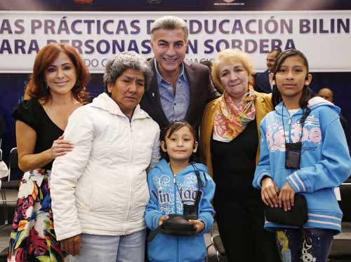Al encabezar la inauguración del segundo Congreso Internacional de Estrategias Prácticas de Educación Bilingüe para Personas con Sordera, el mandatario destacó que este avance tecnológico cambia la vida de las personas, por lo que reiteró que seguirá trabajando para garantizar el pleno goce de los derechos, la inclusión y participación de la población con alguna discapacidad. Destacó que en este espacio se intercambiarán experiencias que darán pauta para establecer nuevos modelos educativos incluyentes; además, mencionó que se conocerán materiales inéditos para la enseñanza de matemáticas, el uso de la tecnología y las metodologías pedagógicas utilizadas en la Escuela de Alta Tecnología Educativa para Sordos. Informó que, de acuerdo con datos del Instituto Nacional de Estadística y Geografía (INEGI), el 5.2 por ciento de la población en el estado tiene algún tipo de discapacidad, de la cual el 37.6 por ciento padece sordera; en este sentido, enfatizó que es fundamental promover la identidad lingüística, formar profesionales en este ámbito e implementar materiales alternativos para el aprendizaje.