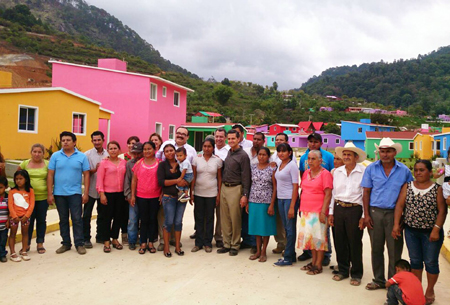 Para recordar con respeto a las víctimas del desgajamiento del cerro ocurrido en septiembre pasado, entregamos 125 viviendas que cubren a todas las familias afectadas por el deslave. Son casas dignas, con 3 cuartos, baño, patio, agua, luz y vialidades.