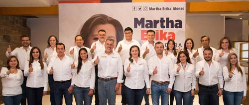 • Jorge David Rosas, Coordinador de Agenda. • Max Cortázar, Vocero. • Sandra Izcoa, Coordinadora de Comunicación Social. • Carlos Martín Blanco Villasuso, Coordinador de Giras y Eventos • Xabiel Albizuri, Coordinador de Vinculación con Candidatos • Alex Cortés y Nuria Palou en la Coordinación de Propuesta y Mensaje. • María de los Ángeles Aguilar, Coordinadora de Fiscalización. • Lourdes Medina; Coordinadora Jurídica. • Mariela Cotero, Coordinadora de Mujeres. • Carlos Blanco Navarro, Coordinador Juvenil. • Carlos Julián, Coordinador de Redes Ciudadanas • Mariela Rodríguez, Coordinadora de Promoción al Voto. • Carolina Beauregard, Coordinadora de ONG y AC. • Anel Nochebuena; Coordinadora de Promoción y Cultura. • Susy Riestra, Coordinadora de Grupos Vulnerables. • Cirilo Salas como Coordinador Magisterial. Finalmente, Martha Erika Alonso se comprometió a realizar campañas de altura y propuestas enfocadas a las necesidades de las diferentes regiones de la entidad, pues para lograr un mayor desarrollo debe lograr la “Igualdad para Todos”.