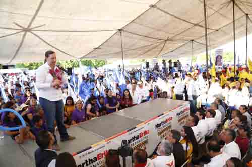 En este sentido, resaltó que una de las prioridades será reforzar el abasto de agua, por lo que se trabajará para habilitar más pozos. "Sé que una de las demandas de este municipio es el abasto de agua, muchas familias no cuentan con agua, por eso me comprometo a intervenir para que Conagua pueda habilitar más pozos y que Cuapiaxtla tenga agua", enfatizó. De igual forma, Alonso Hidalgo indicó que se realizará una revisión de las escuelas de la región para verificar las condiciones en las que están operando. Finalmente, la abanderada de la Coalición "Por Puebla al Frente" pidió a los asistentes su confianza y apoyo para lograr el triunfo el próximo 1ro. de julio, y así crear un gobierno más cercano y humano, que transforme sus propuestas en políticas públicas que beneficien a las familias poblanas.