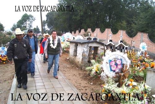 A las cuatro de la tarde, el Director de obras públicas, Guillermo Lobato Toral, en representación del Presidente Armando Sánchez Jiménez, en primer término presidió la ceremonia de corte del listón en lo que fue la obra de construcción de la barda perimetral del panteón, que tuvo un costo de 872 mil 34 pesos. A pesar de la llovizna que se registró durante toda la tarde, la gente acompañó a las autoridades en el recorrido por el panteón, en donde se mostró la remodelación de la capilla y la nueva barda, en donde también estuvieron el Regidor de Educación, Noé Reyes Díaz, el de Salud, Abraham Armijo Ruiz y el de Gobernación, Mario Lino de la Calleja Santiago.