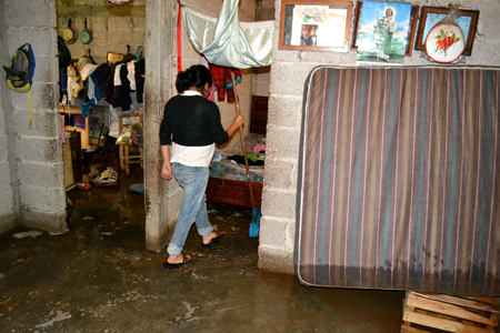 Yolanda Ramos Juárez, habitantes de la colonia, señaló a la 1:40 horas, escucharon un sonido fuerte y cuando se dieron cuenta, el agua se estaba filtrando por la puerta principal de su domicilio, por lo que dijo que de inmediato pusieron a salvo a los cinco niños que habitan en su casa y abrieron la puerta trasera para que agua saliera hacia la barranca.