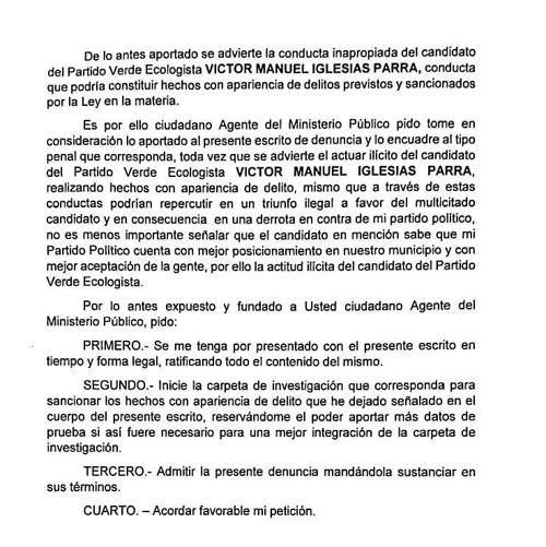 del Partido Verde Ecologista de México Víctor Manuel Iglecias Parra,