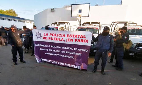 Elementos de esta corporación confirmaron con fotografías la protesta que se lleva a cabo dentro del inmueble donde se ubican las oficinas de la Policía Estatal Preventiva, donde también colocaron lonas en los accesos y en algunas patrullas estacionadas afuera del edificio. En las lonas y algunas cartulinas se pueden ver las principales demandas de los uniformados que versan sobre la homologación de salarios pues su sueldo es más bajo que el de los policías municipales de Puebla; exigen un mejor seguro de vida y atención al problema del Covid-19, ante los contagios en la corporación y la muerte de varios uniformados.