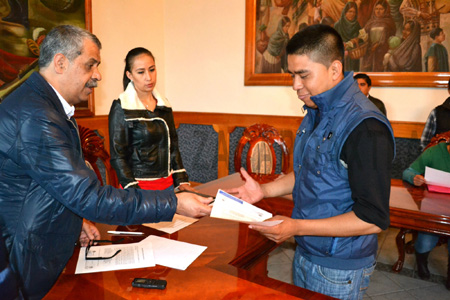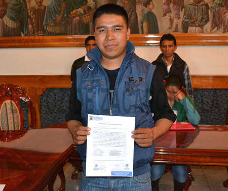 A las 9:00 horas se inició la sesión y en el salón de cabildos del palacio municipal, la presidenta de la comisión y regidora de gobernación, Nayeli Vázquez Martínez, entregó las constancias a cuatro de los ganadores que fueron Leobardo Ramiro Inés de Xalacapan, Marithé Cortés Calderón de Las Lomas, Israel flores Castillo de Tatoxcac y Miguel Flores Martínez de la junyta auxiliar de Comaltepec.