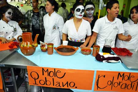 Dentro de la exposición explicaron que el mole poblano tuvo su origen en el convento de Santa Rosa en la ciudad de Puebla, alimento que al igual que los chiles en nogada, surgió como un invento de las monjas para atender a las personalidades que llegaban de España.