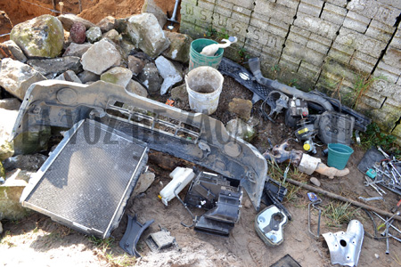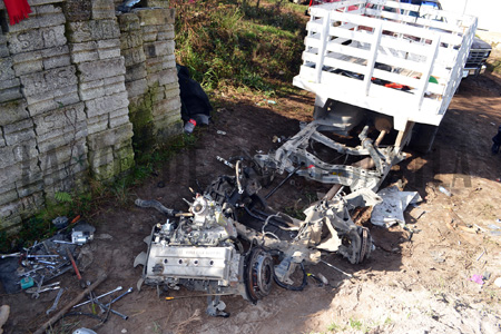 En el terreno se encontraron las piezas de la camioneta robada, además de autopartes de otras unidades, así como otra camioneta marca Nissan, color blanco, tipo pick up, modelo 1998, sin placas de circulación.