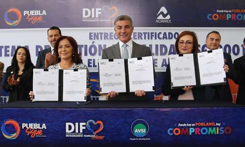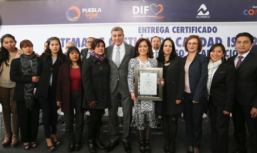 Reconoció el liderazgo de Dinorah López de Gali, por crear un marco jurídico sólido para las familias y agradeció el trabajo de los servidores públicos del DIF Estatal, para obtener este logro. "Se traduce en el establecimiento de medidas certificadas para que a través de la adopción, nuestras niñas, niños y adolescentes encuentren el hogar idóneo, integrado por personas amorosas, solidarias y dispuestas a proveerles los medios suficientes para su educación y desarrollo", manifestó. Por su parte la titular de NORMEX, Laura Campos, indicó que gracias a que el proceso de adopciones ya se encuentra bajo la patente 2015, los ciudadanos pueden tener certeza de que en Puebla se trabaja por un mejor estado.