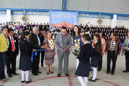 La banda de Guerra y un grupo de danza de esta institución, acudieron hasta la Presidencia Municipal y acompañaron al alcalde, la Presidenta del DIF Margarita Lobato y el cuerpo de Regidores en un recorrido sobre la calle 16 de septiembre hasta la escuela, en donde fue recibido por el personal docente, estudiantes y padres de familia. En el lugar el Presidente informó que el techado tuvo un costo de 1 millón 241 mil 305 pesos y dijo que desde un inicio en que le informaron de los daños al techado de esta escuela, se puso en contacto con el Director Arnulfo Molina Torres, para emprender acciones y que la escuela contara de nuevo con el techado.