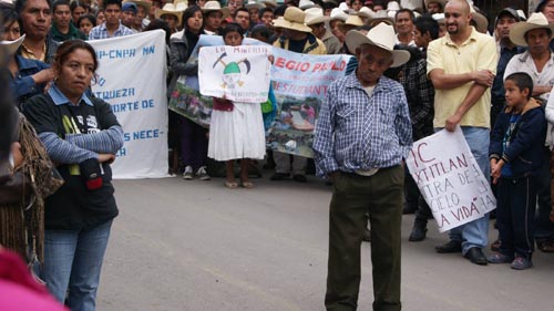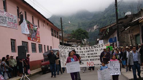 Ante ello, los manifestantes marcharon y lanzaron consignas en contra de la explotación de la mina de Tetela de Ocampo y en contra de la construcción de la hidroeléctrica que busca utilizar los caudales de los ríos Ateno y Zempoala y que contempla utilizar más de 18 hectáreas de los municipios de Zapotitlán, Zoquiapan, Nauzontla, Atlequizayán y Xochitlán de Vicente Suárez. Al término de la marcha, las organizaciones, asociaciones civiles y agrupaciones de indígenas emitieron un comunicado que incluyó dos demandas, la primera es la cancelación definitiva de todas las concesiones autorizadas a grandes empresas nacionales y extranjeras para explotar minas a cielo abierto en diversas comunidades indígenas de la sierra norte, la construcción de plantas hidroeléctricas para su abastecimiento y ciudades rurales.