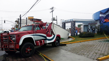estaba vacío. Las autoridades del lugar informaron que la causa de este percance fue la misma que en el 2013, que fue la ruptura del sistema de drenaje que cruza el inmueble, lo que provocó que el agua pluvial y residual que desciende desde la colonia Contla, se filtrara por debajo del Cessa, lo que provocó el hundimiento. Grúas de la región realizaron el rescate del camión tipo rabón, con placas de circulación JT-23-536 del estado de Jalisco, en tanto personal de protección civil realizará un peritaje para determinar si el edificio no resultó dañado, al igual que evaluarán las instalaciones del Centro Integral de Servicios (CIS), ubicado a un costado del Cessa.