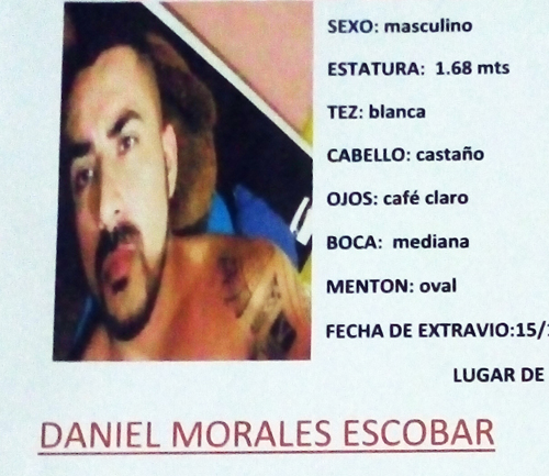 En el primer caso se reportó la desaparición de Daniel Morales Escobar de 26 años, de quien se dijo que salió de su domicilio en Coatzacoalcos el pasado trece de diciembre con destino a Zacapoaxtla, en donde de acuerdo a lo que le comentó a sus familiares, se encontraría con un amigo que le había realizado una propuesta de trabajo. El día catorce de diciembre se comunicó con sus padres y les comentó que ya se encontraba en Zacapoaxtla, pero después de esa llamada ya no se volvió a comunicar con ellos y su teléfono móvil manda a buzón, por lo que comenzaron una búsqueda pero hasta el momento no han tenido contacto.