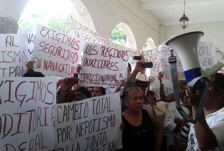 Desde las 18:00 horas arribaron los inconformes y con pancartas mostraron su descontento por diversas situaciones, entre ellas la falta de obra pública, el maltrato de parte de personal del ayuntamiento y por que dejó de entregar participaciones a las dos juntas auxiliares y la gente de Nanacatlán expresó su rechazo a la destitución de su alcalde auxiliar Oscar García García.