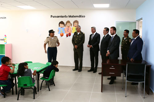 Salvador Cienfuegos destacó que la edificación de estos centros es un compromiso del Presidente de la República, Enrique Peña Nieto, por petición expresa de los infantes de este campo militar. Resaltó la afinidad que existe entre el pueblo, el gobierno y el cuerpo militar, como resultado del trabajo conjunto que se ha realizado en beneficio de los ciudadanos; en este sentido, dijo que en el estado siempre se han mostrado solidarios y hospitalarios con las tropas. A nombre de las mujeres y hombres que integran el Ejército y la Fuerza Aérea, el titular de la Sedena agradeció al gobernador Tony Gali y a los poblanos el permanente respaldo que le han otorgado a estas instituciones. Explicó que en el CENDI, que tiene una capacidad para recibir a 450 menores, se brinda atención educativa, asistencial y formativa con calidez y alto sentido comunitario a las hijas e hijos de los elementos, desde los 43 días de nacidos hasta los 5 años 11 meses.