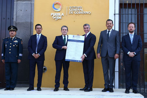 Inician en Puebla actividades del mes Patrio - Presiden la ceremonia solemne de izamiento de Bandera y la primera guardia de honor al Lábaro Patrio - El mandatario colocó el Bando Solemne alusivo a las fiestas patrias en el Palacio Municipal y en las sedes de los tres Poderes del Estado 3 Septiembre 2018