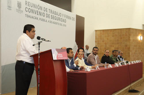 "Un gobierno que no tiene estrategia, que no tiene metas y que no se mide, no sabe a dónde va, no se sabe a dónde va, así que no podemos decir nosotros que estamos bien, es como aquel o aquella que dice que la inseguridad son temas de percepción. No, quien dice eso mejor que diga que no puede, los temas de inseguridad son temas de realidad y son temas de corrupción, no vamos a dejar que los encargados de la seguridad pública anden rodeados de guaruras y camionetas haciendo alarde de fuerza", sentenció Barbosa Huerta. El mandatario estatal reiteró que ningún grupo delictivo sobrepasará las fuerzas del Estado y el gobierno garantizará la seguridad para las familias poblanas lo cual se conseguirá mediante la coordinación de las fuerzas federal, estatal y municipal. En este acto, el presidente municipal de Tehuacán, Felipe Patjane signó el Convenio de Seguridad y atestiguaron la firma del mismo los alcaldes de Caltpec, Cañada Morelos, Tlacotepec de Benito Juárez, Chapulco, Juan N. Méndez, Coyotepec, Nicolás Bravo, Tepanco de López y Zapotitlán Salinas, así como representantes de los empresarios, iglesia y organizaciones civiles