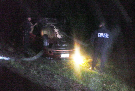 Elementos de la policía municipal y vialidad acudieron al lugar y encontraron volcado el automóvil color vino, con placas de circulación 586-RVE del Distrito Federal, además de que se encontraba en el lugar el conductor Enrique Calderón “N.” de 39 años, quien tiene domicilio en la colonia El Fortín de Zacapoaxtla, quien presentaba golpes menores. Se informó que el accidente se provocó debido a exceso de velocidad y falta de precaución al conducir, lo que propició la salida del vehículo de la carretera y tras golpear una ladera, quedó a más de diez metros de la cinta asfáltica. El conductor fue presentado en la comandancia de policía y quedó a disposición de la dirección de vialidad municipal, en tanto que el vehículo fue rescatado y trasladado al corralón de grúas Zacapoaxtla, en donde se entregará al propietario hasta que sean solventadas las infracciones a las que se hizo acreedor el chofer.