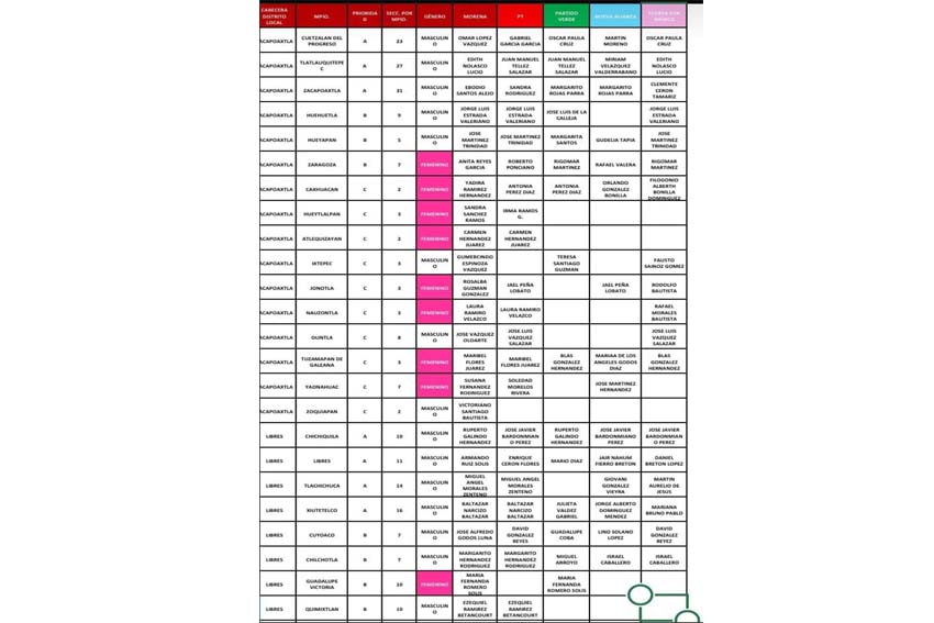 la lista de las candidatos y candidatas de la