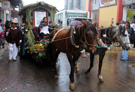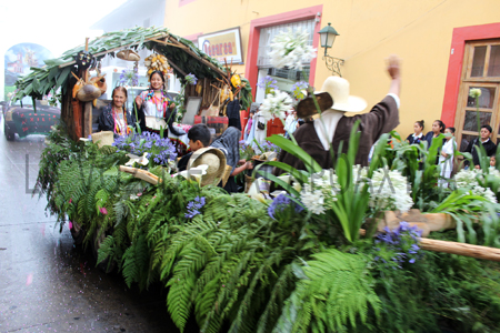 A las 15:00 horas de este tres de mayo se realizó un desfile con carros alegóricos en las principales calles de la cabecera municipal, en donde trece localidades presentaron sus costumbres y tradiciones en los carros, además de que los adornaron con fauna y flora y en algunos casos, mostraron la gastronomía heredada desde la época prehispánica.
