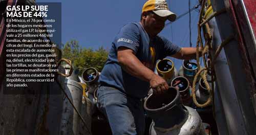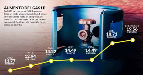 El Gas LP subió 58.96% en lo que va del presente sexenio · 25 millones de familias mexicanas lo utilizan. · En el sexenio también se registran importantes aumentos a los combustibles y la energía eléctrica. 5 Enero 2018 Los precios de los combustibles, gas y luz se incrementado en estos últimos años, a pesar de las promesas de la Reforma Energética. El Gas LP, utilizado por el 76 por ciento de los hogares mexicanos, ha registrado el mayor aumento en lo que va del sexenio del Presidente Priísta Enrique Peña, alrededor del 58.96 por ciento. En el caso de la luz al cierre de 2017, su precio se incrementó 0.65 por ciento. En el sector comercial tuvo un aumento del 18.5 por ciento.