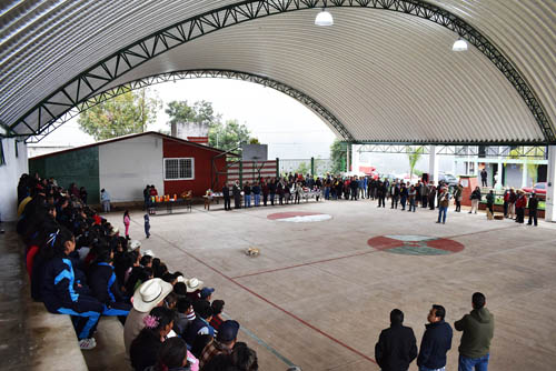 El edil recordó que en el terreno que se ubicaba frente al juzgado de paz, los jóvenes jugaban futbol, pero en tiempo de lluvia los ciudadanos se veían en la necesidad de rentar lonas para llevar a cabo eventos o durante la fiesta patronal, por lo que desde el inicio de la administración, recibió la solicitud de apoyar a esta comunidad y mejorar sus espacios. Por ello informó que en primer término se rehabilitó el muro de contención de la Escuela Primaria que se ubica a un costado de la cancha, más adelante con el apoyo de los ciudadanos en mano de obra, se pavimentó la cancha y en esta ocasión, las autoridades acudieron para la entrega del techado que complementa la obra. Guillermo Lobato detalló que la reparación del muro de la escuela Primaria tuvo un costo de 379 mil 28 pesos y comentó que también se encuentra concluido un techado en la Telesecundaria de esta misma comunidad, obra que será entregada en próximos días y que fue otro compromiso que cumplió con la localidad de El Progreso y los padres de familia de la escuela. Héctor Arellano López, juez de paz de la comunidad, en nombre de los pobladores dio las gracias al Presidente y luego de la develación de la placa alusiva a la obra, aseguró que durante la administración que culminará el 15 de octubre, se atendieron las principales necesidades y se brindó un gran respaldo a todas las instituciones educativas de El Progreso.