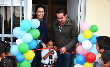 pesos para el programa de vivienda Luego del evento en el auditorio de la comunidad, las autoridades se trasladaron a la Primaria, en donde el alcalde y la Presidenta del DIF acompañados de una alumna, realizaron el corte del edificio del desayunador escolar, el cual fue entregado con mobiliario, refrigerador, estufa, además de lavabos para el lavado de las manos de los estudiantes. El Presidente informó que en este desayunador escolar se invirtió 1 millón 72 mil pesos, el cual los docentes dijeron que será de gran ayuda para los pequeños de esta primaria que contarán con un espacio digno para tomar sus alimentos. Finalmente el alcalde felicitó a los 18 ciudadanos que se inscribieron en el programa de árboles frutales y a los 27 campesinos que participaron en el programa de fertilizante e invitó al resto de ciudadanos a que recuperen la actividad agrícola para beneficio de sus familias.