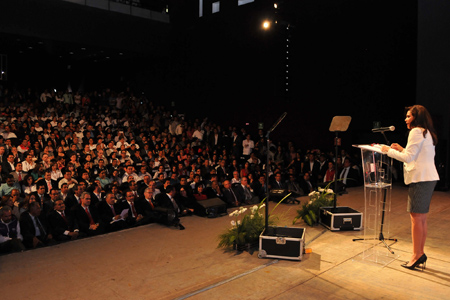 Frente a un auditorio compuesto por integrantes de diversos sectores de la sociedad, como los rectores de la UDLAP y UPAEP, Luis Ernesto Derbez y Emilio José Baños Ardavín, así como del presidente del Consejo Coordinador Empresarial, Fernando Treviño Núñez, y el presidente de la Cámara Mexicana de la Industria de la Construcción (CMIC), Alberto Ramírez y Ramírez, detalló que su propuesta está fundamentada en una estrategia que denominó “5-10-30”: cinco grandes retos, 10 razones para trabajar por Puebla y 30 propuestas de impacto. Acompañada también del presidente del Comité Ejecutivo Nacional del PRI, Manlio Fabio Beltrones, la abanderada tricolor presentó el modelo “Puebla para Todos”, que incluyen los 5 ejes de trabajo para sacar al estado del rezago y la pobreza “que nos lastima y ocupa”. Cinco Retos para una mejor Puebla El primero de estos retos denominado “Puebla con equidad, inclusión y desarrollo humano” atenderá a “la otra Puebla. La Puebla de las necesidades y del rezago. Atender a la Puebla olvidada, a la Puebla de la mayoría”, dijo. “La pobreza no espera ni entiende de tiempos políticos. Según el CONEVAL, al día de hoy seis de cada 10 poblanos vive en condiciones de pobreza (…) Propongo hacer frente a este reto, mediante la implementación de programas alimentarios, de salud, educación, mejoramiento de vivienda y mayor cobertura de servicios básicos para los grupos más desprotegidos”, añadió. Continuó con su segundo reto que “es impulsar una Puebla con empleo, competitividad y bienestar para todos, orientada a fortalecer la igualdad, incrementar la creación de oportunidades y la integración de todos los poblanos al desarrollo económico”. Alcalá Ruíz mencionó que su tercer reto es contar con una Puebla segura y con Justicia Cotidiana. “Mi visión incluye también una transición del modelo tradicional y desgastado de seguridad pública a uno de seguridad estratégica que contempla tres vertientes: uso integral e inteligente de la tecnología; análisis y mecanismos de información proactiva y operatividad policial estratégica” agregó.