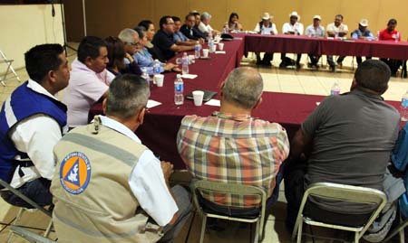 En primera instancia, el personal de protección civil se reunió con el alcalde Guillermo Lobato Toral, con quien encabezó una reunión informativa con ediles auxiliares y jueces de paz, en donde Herrera Cabrera comentó que por instrucciones del Gobernador Tony Gali Fayad, se encuentran recorriendo los 133 municipios que tienen zonas de alto riesgo por lluvias.