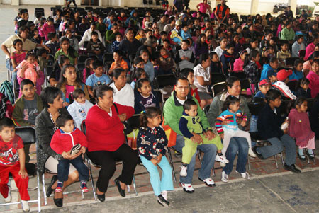 Explicó que el DIF repartió 16 mil juguetes en todas las escuelas del municipio, 15 mil que fueron adquiridos por el ayuntamiento y mil que fueron donados por parte del DIF estatal, estos últimos que se entregaron durante el evento del sábado. Al término del evento del doble de Cepillín, se cortaron y repartieron dos pasteles, uno para niños y otro para las niñas, en donde las madres agradecieron a las autoridades que no se olvide esta fecha importante para todos los pequeños, porque para ellos siempre es importante un regalo y que se les desteje en su día. La Presidenta aseguró que además de este festejo, se continuará para que los niños de Cuetzalan sigan viviendo en tranquilidad, y para ello se continuará con el trabajo para erradicar la violencia infantil y para evitar casos de maltrato en las escuelas.