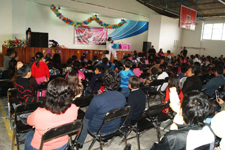 Con un show en donde se cantaron temas infantiles que se han hecho clásicos como “La Feria de Cepillín”, “Tomás”, “En un bosque de la china”, “Amor chiquito”, entre otros y con la presencia de botargas, los niños disfrutaron de un ameno espectáculo en donde se repartieron obsequios y globos, así como pintacaritas.