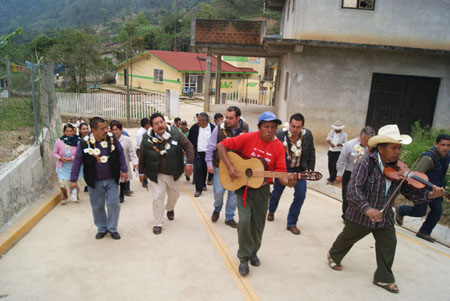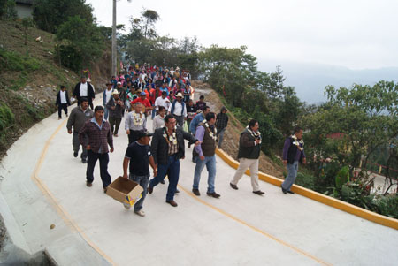 Más de 300 pobladores, entre los que se encontraban alumnos de las tres escuelas de la comunidad, recibieron a las autoridades en el camino principal, cortaron el listón y acompañados de la banda de guerra de la primaria Nicolás Bravo y un trío de son tradicional, recorrieron la obra, la cual beneficia a toda la población.