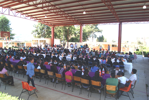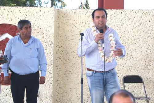 A las 14:30 horas, el alcalde en compañía del director de obras Guillermo Lobato Toral, el regidor de Industria y Comercio Pedro Prado Cid y el regidor de Educación, Noé Reyes Díaz, arribó a la escuela, en donde más de 600 personas, entre alumnos, padres de familia y docentes lo recibieron y externaron su agradecimiento por la obra.