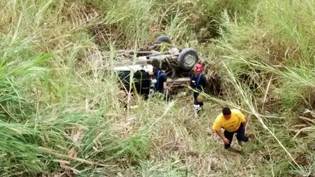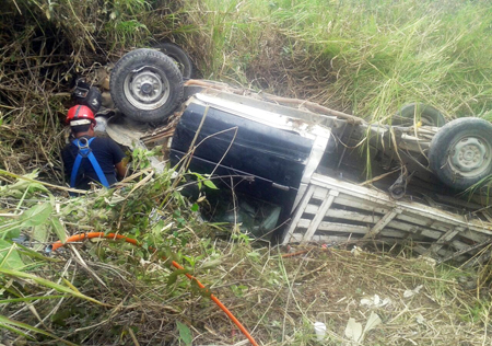 Al lugar acudieron paramédicos del Sistema de Urgencias Médicas Avanzadas (SUMA) y brindaron los primeros auxilios a Sebastián Morales Miguel de aproximadamente 38 años, a quien se trasladó al Instituto Mexicano del Seguro Social (IMSS), en donde se le atendió de una fractura en el brazo derecho y traumatismo moderado en la cabeza. Los dos pasajeros de la camioneta tipo estacas, color negro con redilas blancas, son originarios de la comunidad de San Rafael Axolota del municipio de Nauzontla y personal de seguridad vial realizó el peritaje y llevó a cabo el operativo de rescate de la unidad del fondo del barranco.