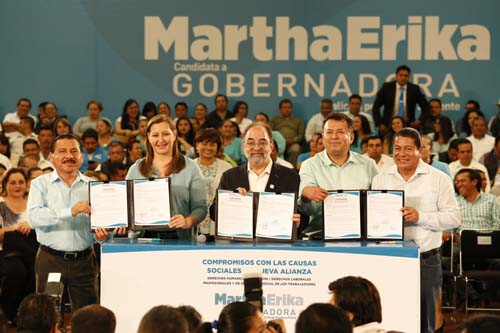 Nueva alianza se suma a la campaña de Martha Érika · Tienen una aliada de la educación: Martha Erika. · La Candidata a la Gubernatura firmó ante notaria pública los compromisos con las causas sociales de Nueva Alianza. 8 Junio 2018