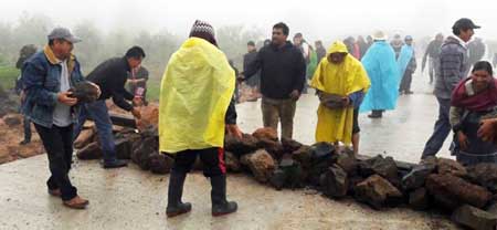 Chignautla.- Luego de que ciudadanos de este municipio cerraron las válvulas del servicio de agua potable para la ciudad de Teziutlán, los inconformes con la construcción del libramiento denominado Arco Sur, ahora colocaron piedras y cerraron el paso de camiones y máquinas hacia la obra.