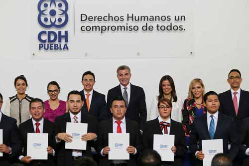 El Presidente de la Comisión de Derechos Humanos del Estado de Puebla, Adolfo López Badillo, reconoció la labor del gobernador Tony Gali, que ha colocado a Puebla como ejemplo nacional en este rubro y refrendó su disposición de seguir uniendo esfuerzos a favor de la población que más lo necesita. Mencionó que ante los retos que enfrenta el Estado mexicano se requiere que las instituciones públicas refuercen medidas para eliminar la violencia contra las mujeres, la justicia por propia mano y la discriminación que padecen diversos grupos vulnerables. Cabe destacar que se otorgaron distinciones a los integrantes de la CDH, así como a los miembros del Consejo Consultivo de la misma. En el evento estuvieron presentes los representantes del Consejo Consultivo de la Comisión de Derechos Humanos: Georgina Ruiz, Adelita Murillo, Mariana Wenzel, Alfredo Perea y Catalina Aguilar.