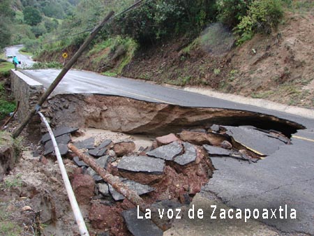 carretera Acuaco –Zacapoaxtla a la altura de Ejecayan como consecuencia