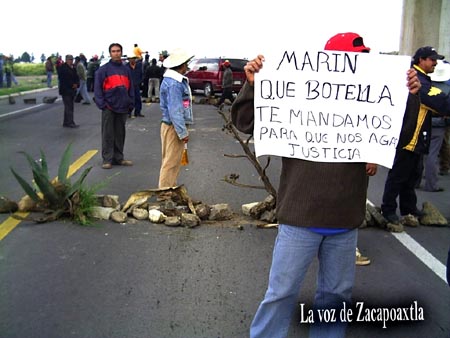 municipio de Cuyoaco. En la fotografía uno de los inconformes haciendo